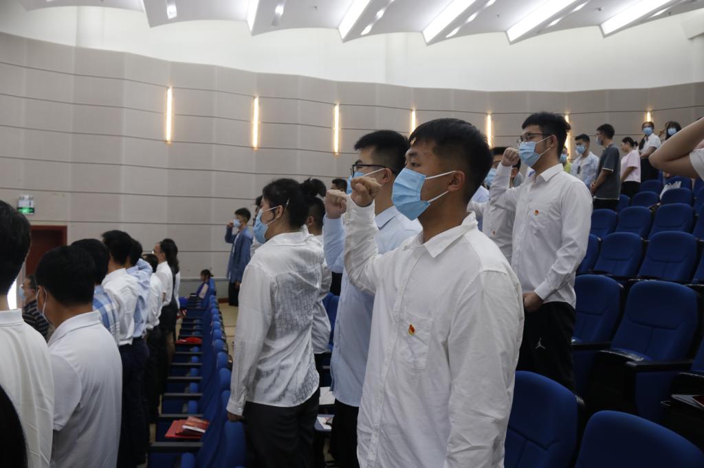 大会的最后一项,面向鲜红的中国共产党党旗,付冬娟带领与会新党员宣誓,带领老党员重温入党誓词。铿锵有力的宣誓,表达了大家对党的无限忠诚、热爱和听党话、跟党走的坚定决心。表彰大会在《国际歌》中圆满落幕。